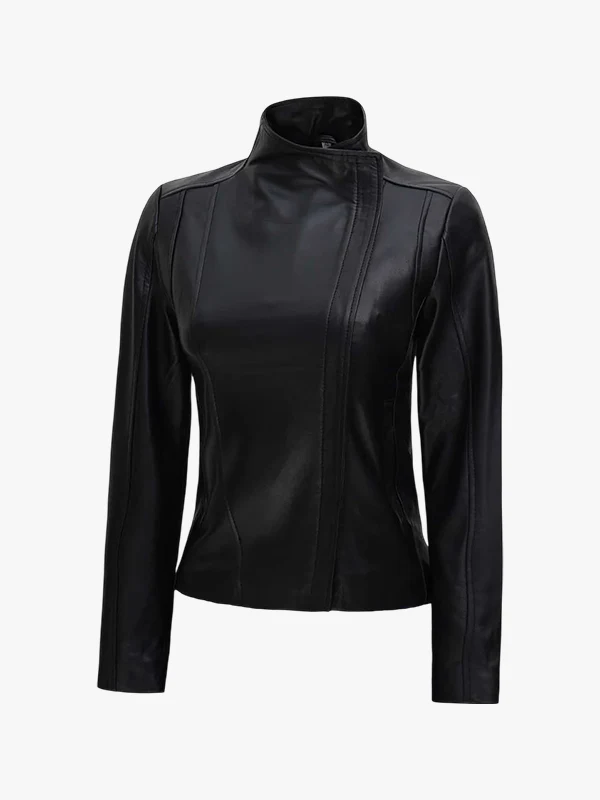 Arezzo Black Flap Closure Leather Cafe Racer Jacket For Women’s | Arezzo Leather Jacket