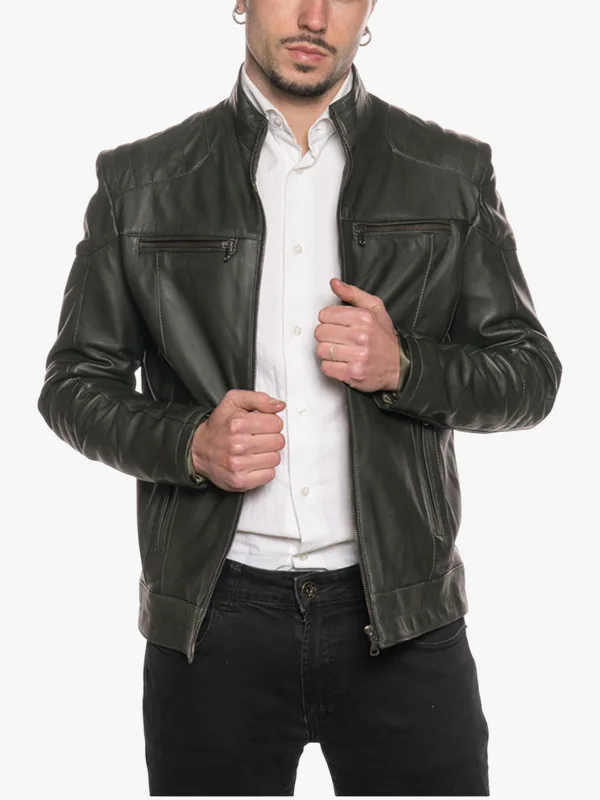 Austin Soft Padded Dark Olive Green Leather Biker Moto Jacket For Men’s
