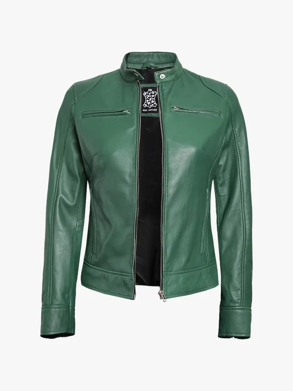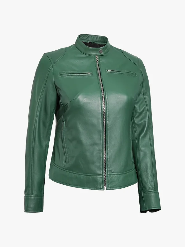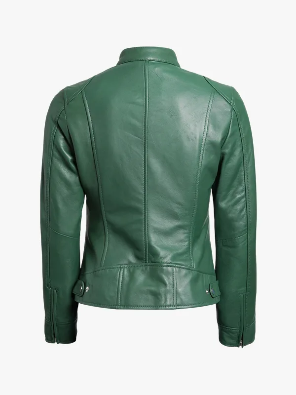 Chloe Green Genuine Leather Cafe Racer Style Jacket
