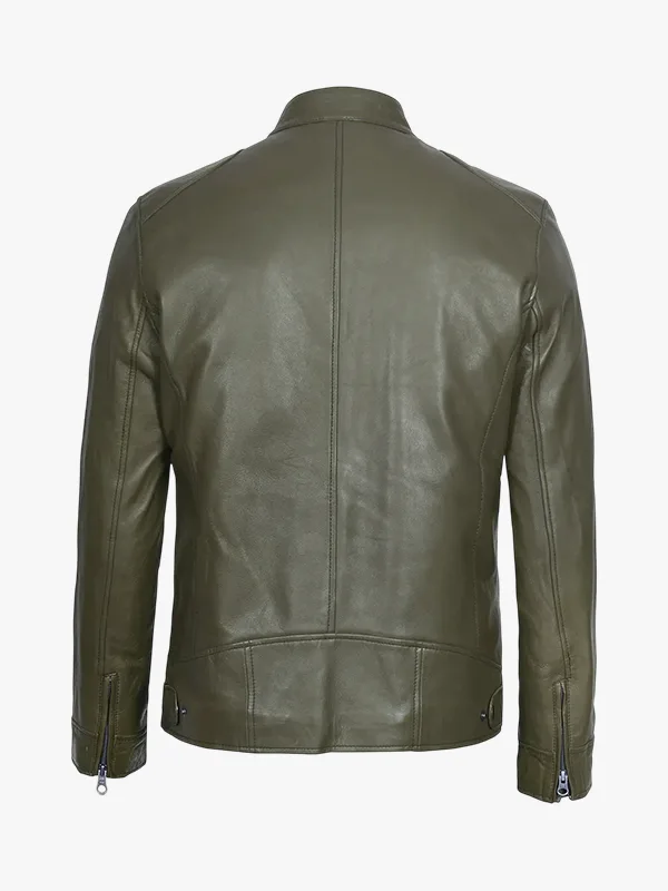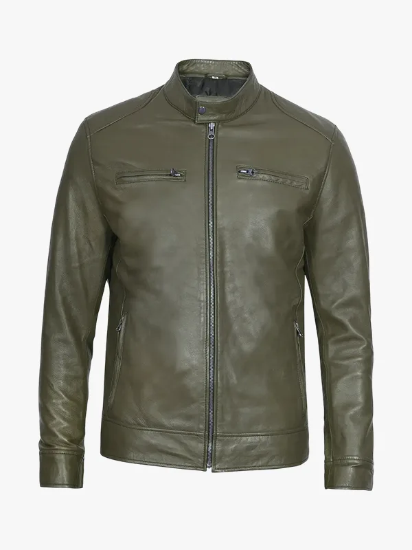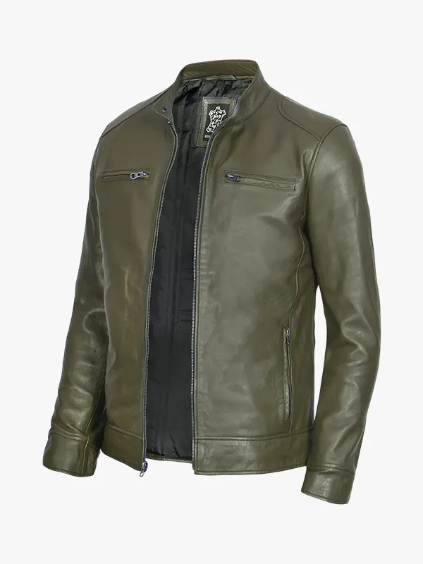 Dodge Olive Green Cafe Racer Leather Jacket