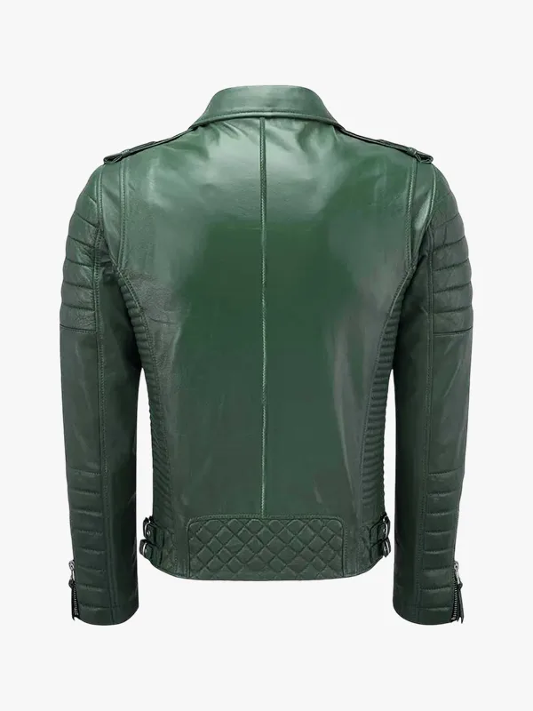 Douglas Quilted Shoulder Green Biker Leather Jacket