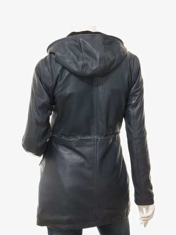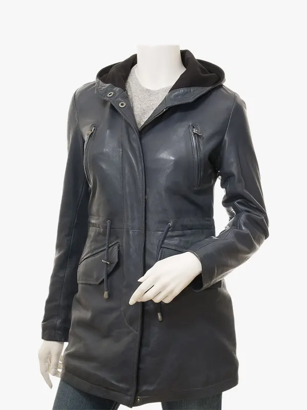 Echo Women’s Blue Leather Parka Hooded Jacket