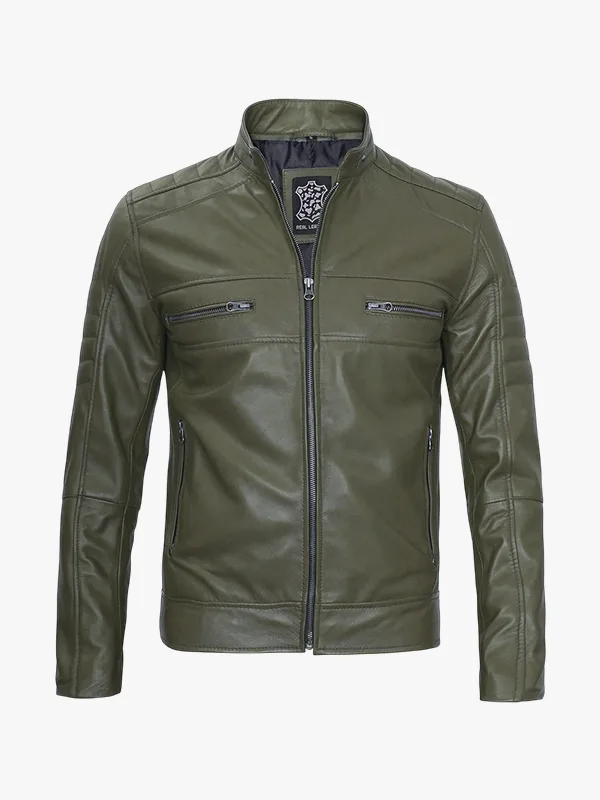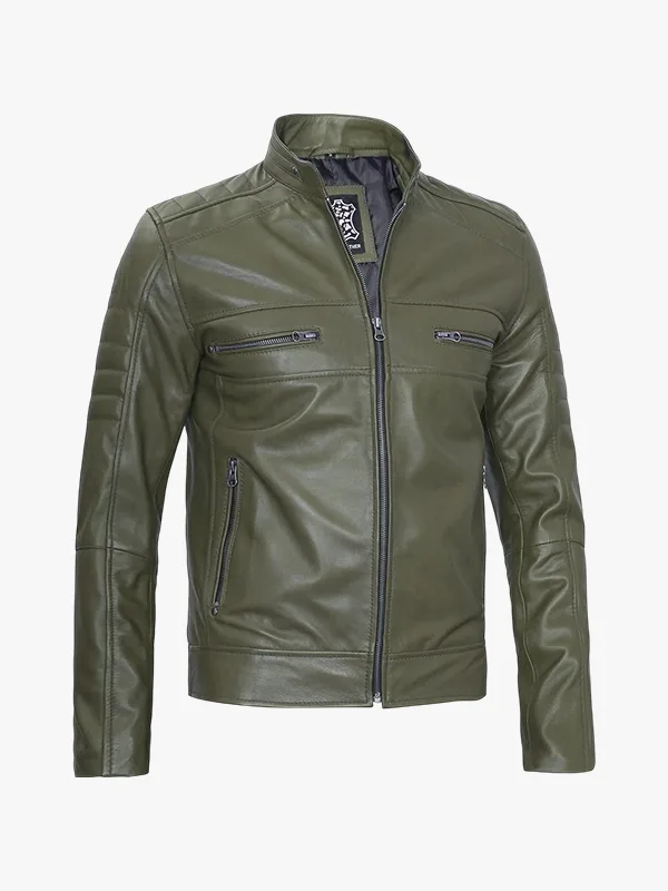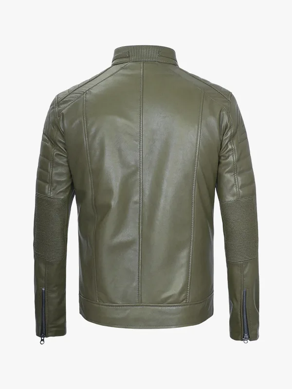 Gary Olive Green Cafe Racer Leather Jacket