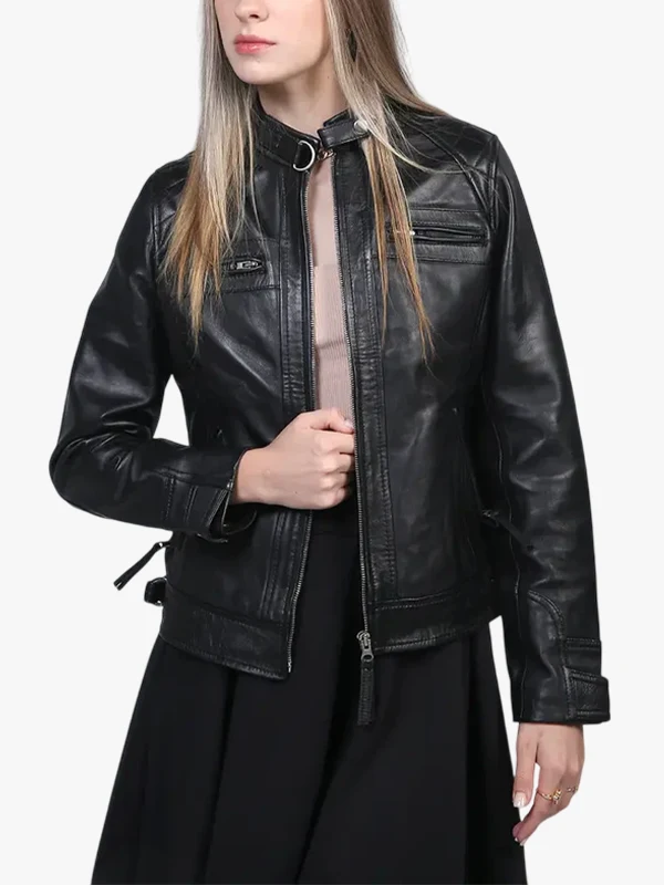 Johnson Black Cafe Racer Leather Jacket For Women’s