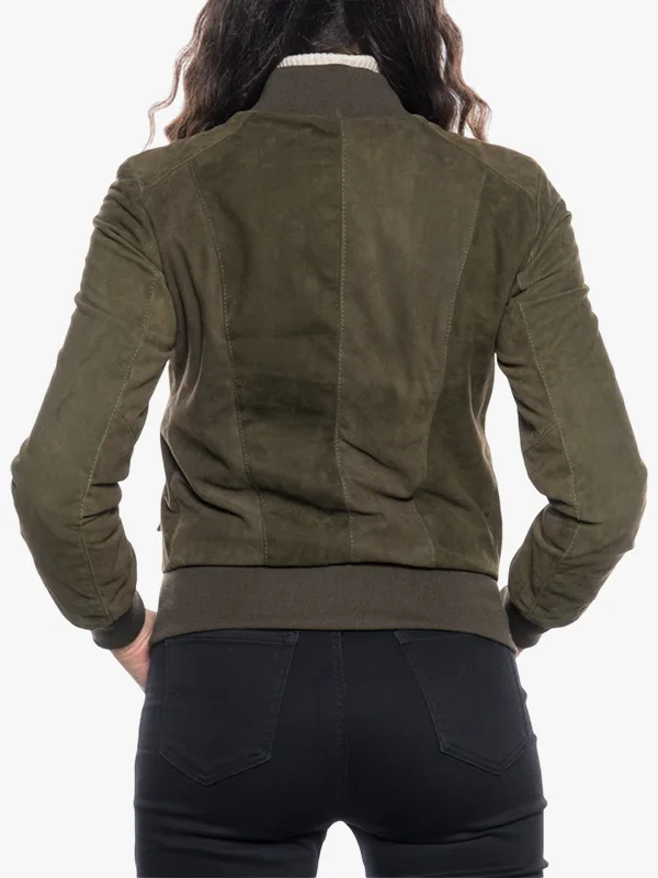 Light Olive Green Suede Leather Bomber Jacket Women’s