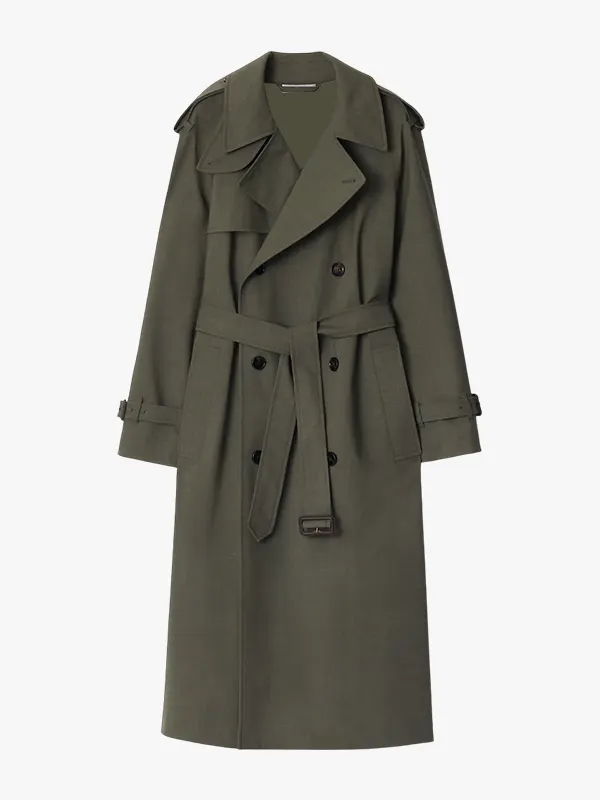 Long Stretch Wool Trench Coat