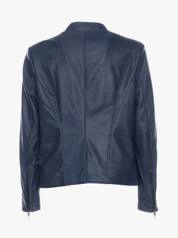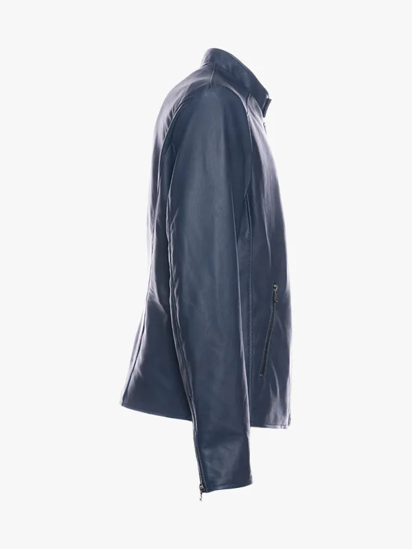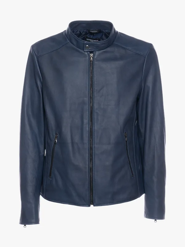 Matthew Lamb Leather Midnight Blue Racer Jacket