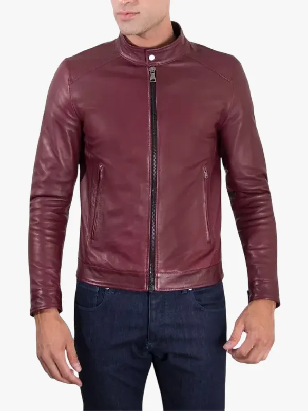 Men’s Burgundy Leather Slightly Fitted Biker Jacket