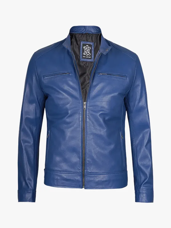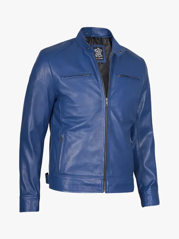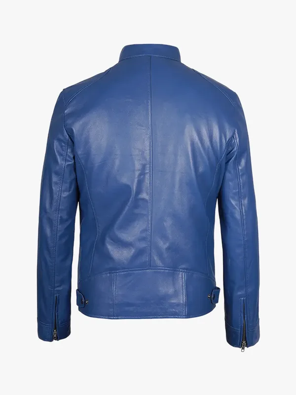Mens Classic Blue Cafe Racer Leather Jacket