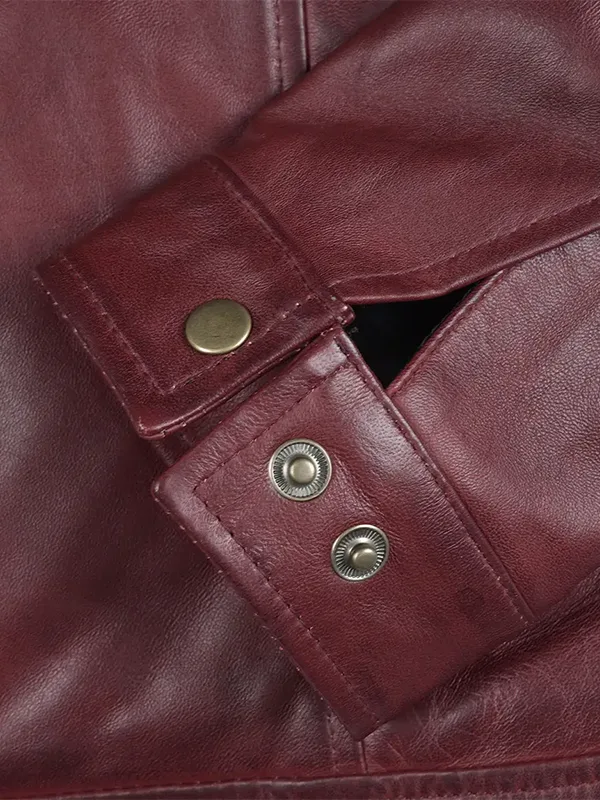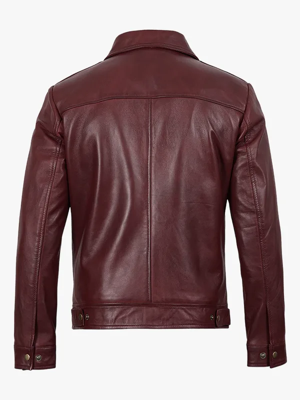 Classic Shirt Collar Burgundy Harrington Leather Jacket For Men’s