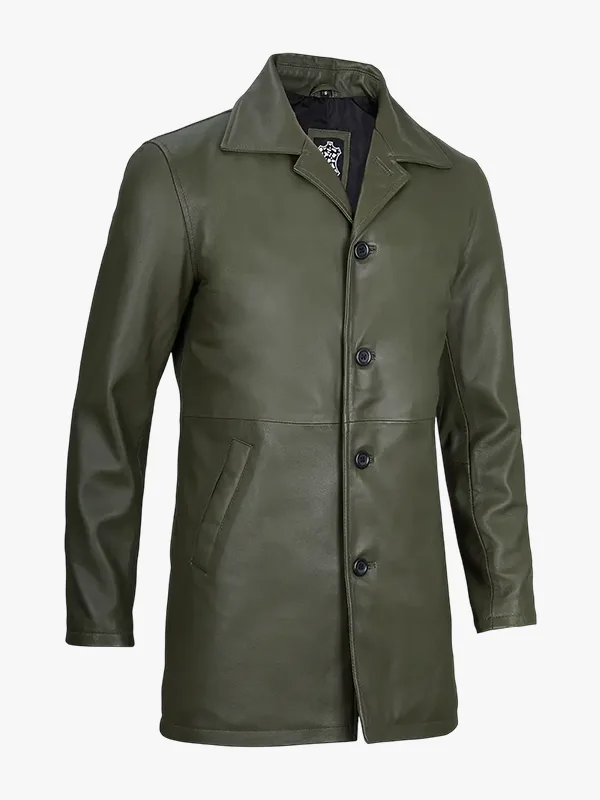 Men’s Olive Green Mid-Length Leather Coat