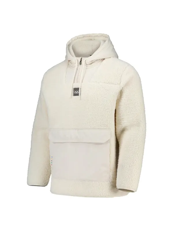 The Olympic Collection Elements Micro Fleece Quarter Zip Hoodie – Cream features an oversized fit. Every Olympic aficionado wants a piece of this beautifully crafted outerwear, now available for purchase at The Wonder Jackets Store.