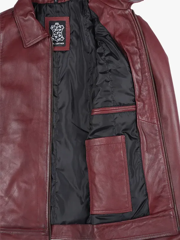 Leather Reeves Harrington Burgundy Real Jacket For Men’s