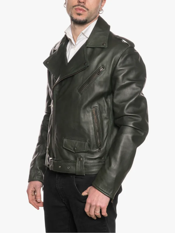 Richard Cross Zip Asymmetrical Green Leather Biker Jacket