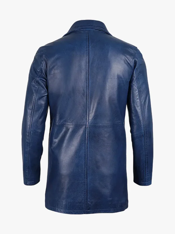 Ronald 3/4 Length Blue Waxed Leather Car Coat