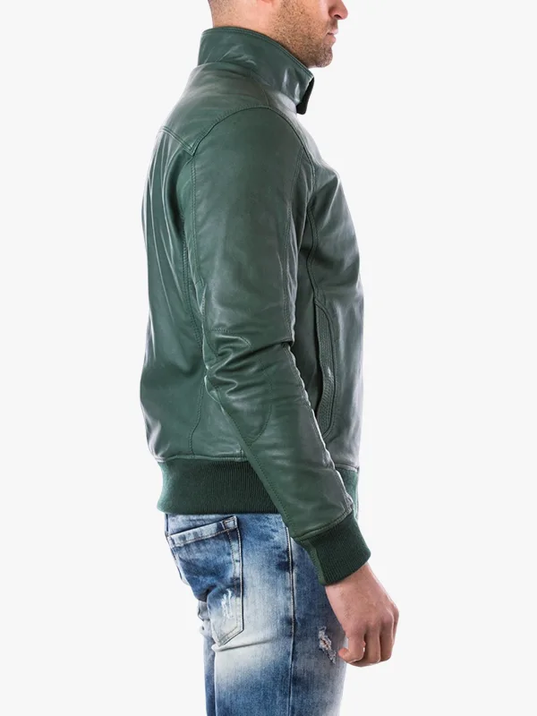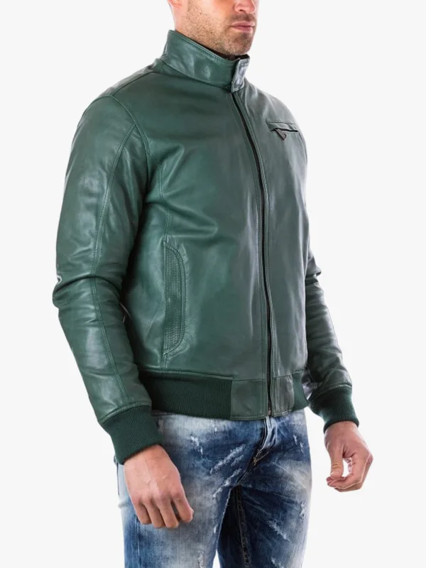 Men’s Thin Green Lamb Bomber Zipper Jacket In Leather