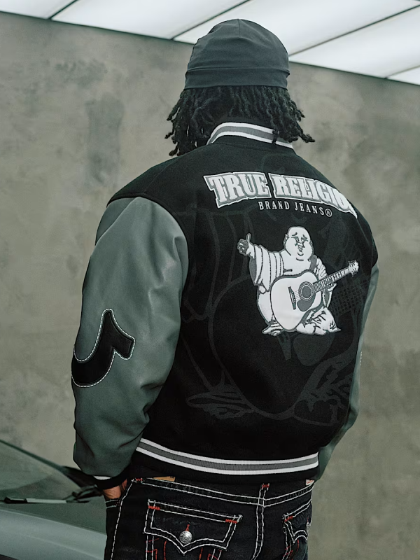 Rendered in a deep, saturated black, the True Religion True OG Boxy Black Varsity Jacket pairs effortlessly with jeans, joggers, or tailored trousers. The relaxed shoulders and slightly wide arms create a comfortable fit that’s easy to layer over hoodies or long-sleeve tees while still draping with polish.