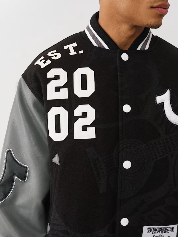 The True Religion True OG Boxy Varsity Jacket brings together timeless varsity aesthetics with a street-ready attitude. With its clean black finish, boxy silhouette, and carefully curated details, this jacket provides a confident layer that works for city life, casual nights, or anytime you want a sharp, relaxed fit.