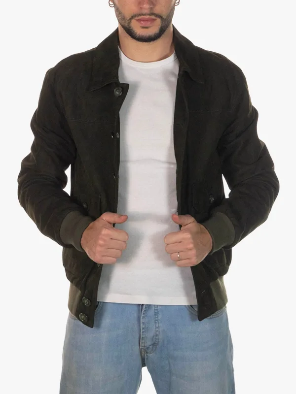U03 Joshua Dark Green Suede Leather Trucker Bomber Jacket