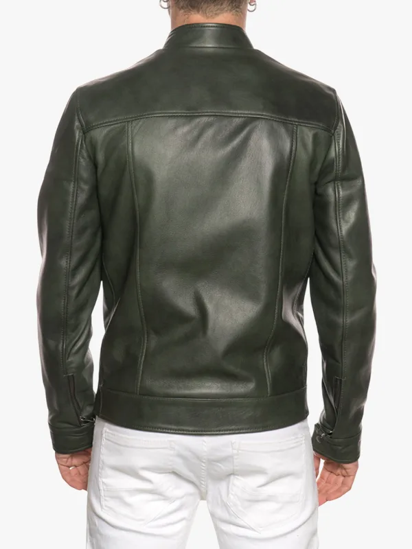 Uo6 Men’s Green Snap-Tab Collar Leather Racer Jacket