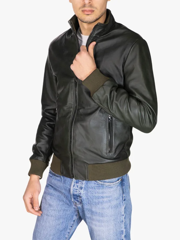 Green Victor Bomber Jacket In Leather For Men’s