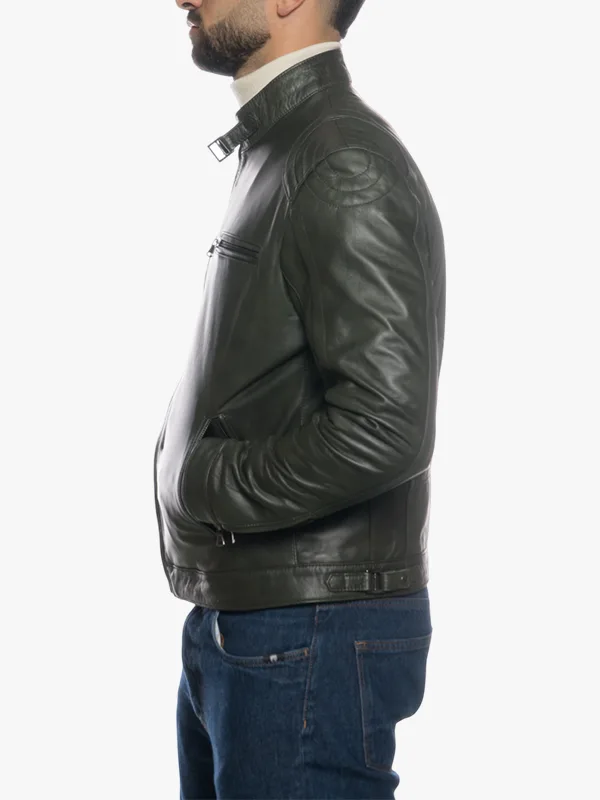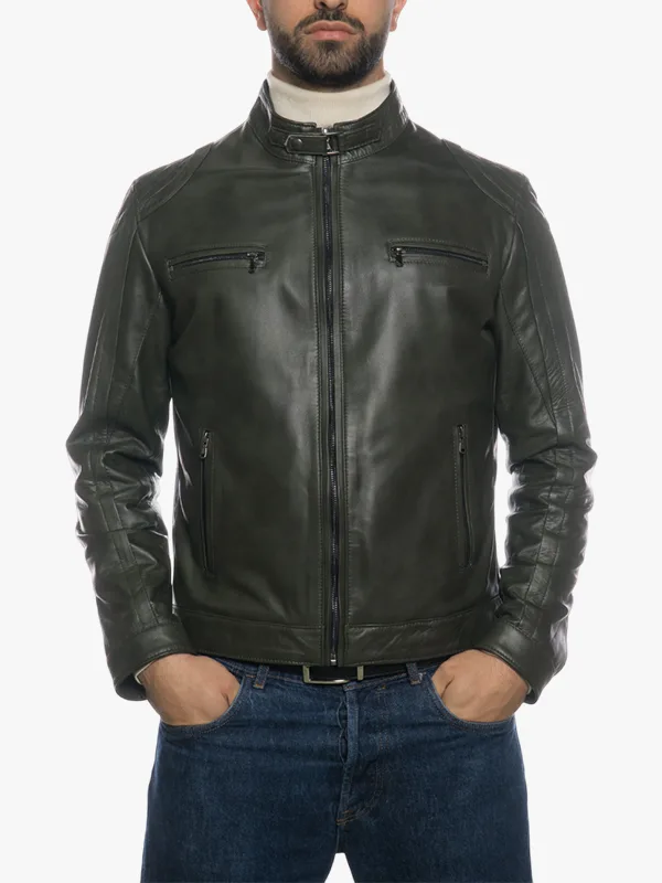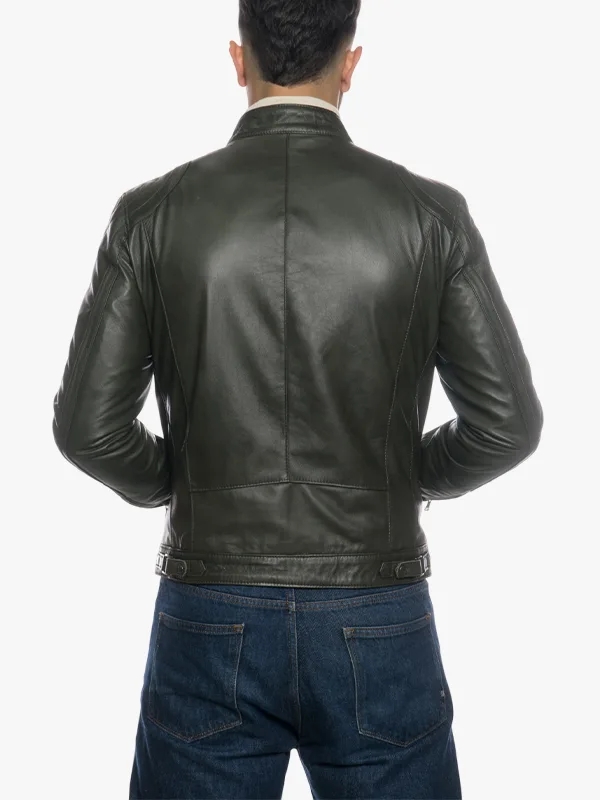 Walter Modern Green Real Lamb Leather Motorcycle Jacket