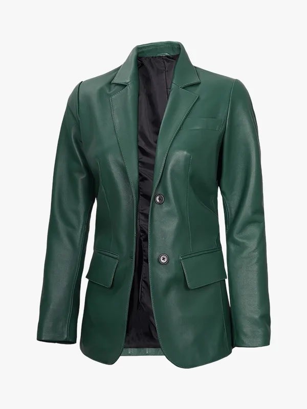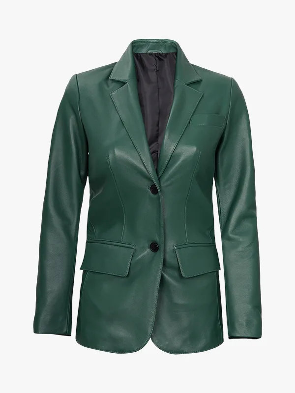 Two Button Green Leather Blazer For Women’s