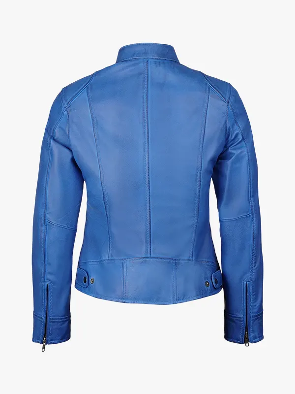 Women’s Vivid Blue Waxed Leather Moto Jacket