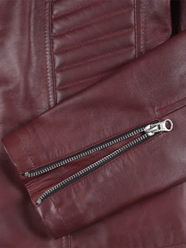 Women’s Maroon Slim Fit Leather Moto Jacket
