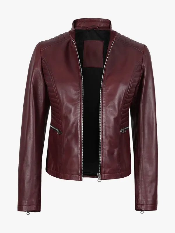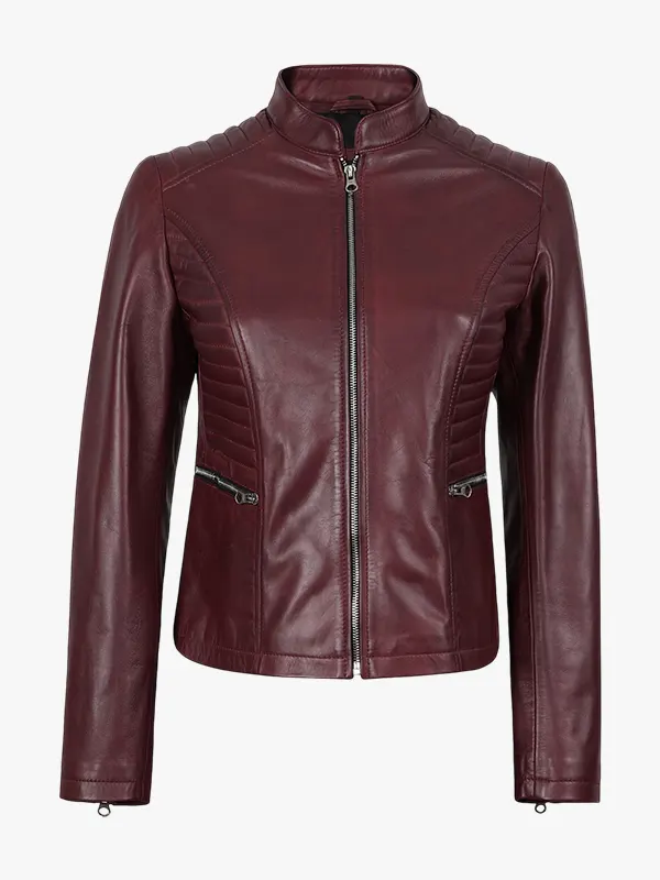 Women’s Maroonish Burgundy Café Racer Leather Jacket