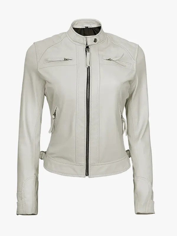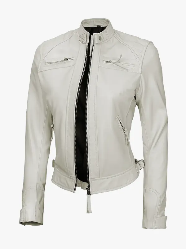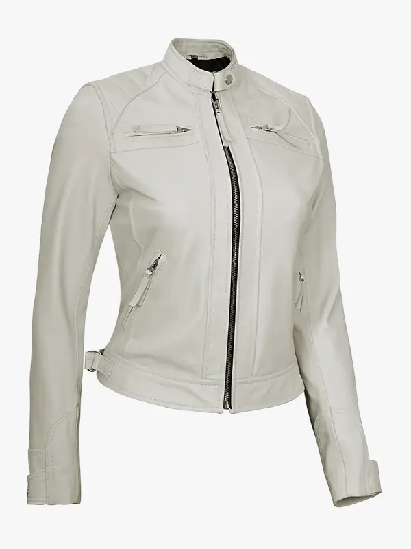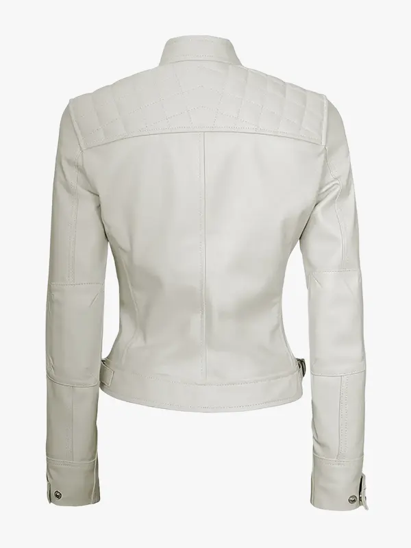 Women’s Off White Quilted Biker Leather Jacket