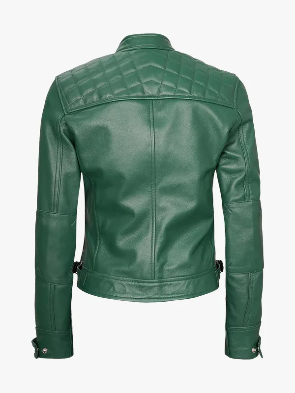Womens Real Lambskin Green Biker Jacket
