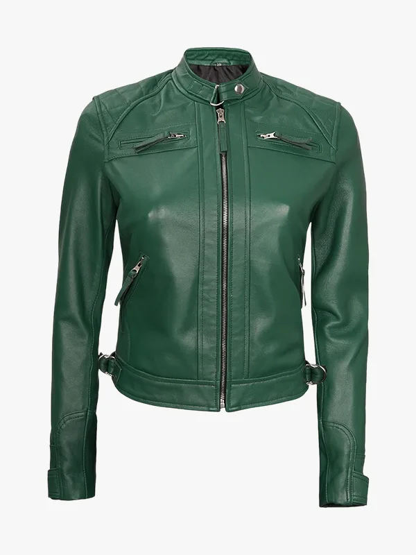 Real Dark Green Cafe Racer Leather Jacket Women’s