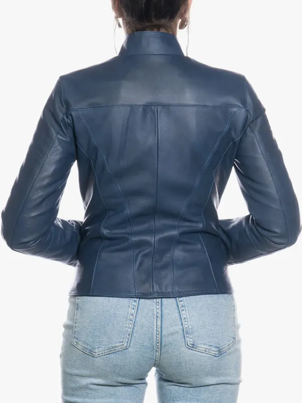 Zara Modern Style Blue Genuine Leather Motorcycle Jacket